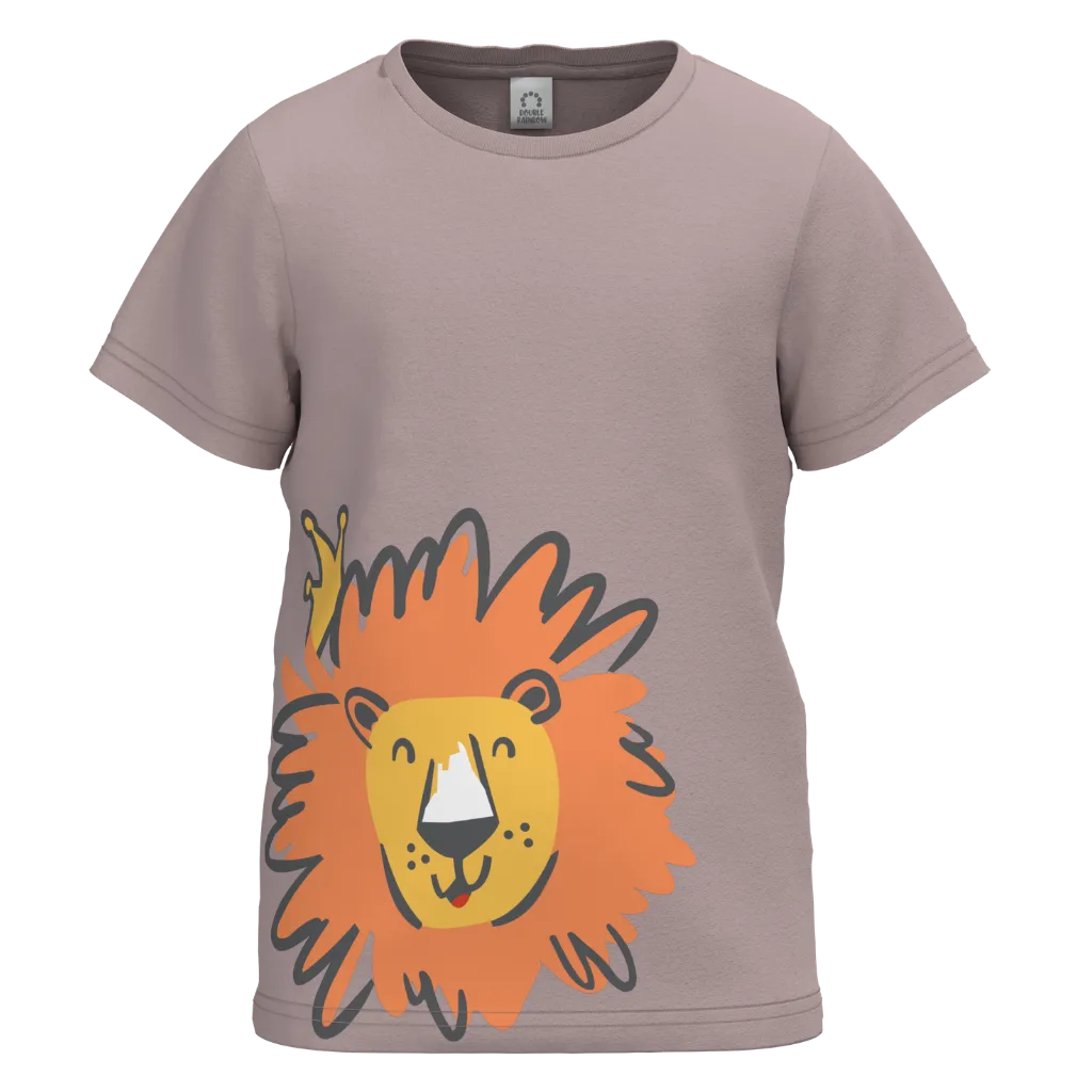 ছেলেদের জন্য বাদামী সুতির ছোট হাতা টি-শার্ট | কিউট লায়ন গ্রাফিক ক্যাজুয়াল টি-শার্ট | ১৫০৩