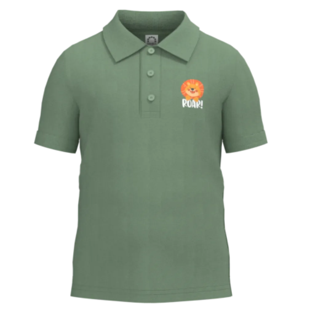 ছেলেদের জন্য স্যাপ গ্রিন কটন শর্ট স্লিভ পোলো শার্ট | লায়ন রোর গ্রাফিক সামার টি | ১৯১৫