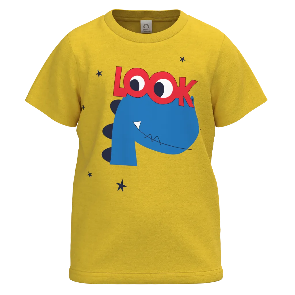 Yellow Cotton Short Sleeve T-Shirt for Boys | Fun Dino Graphic Summer Tee | 1107