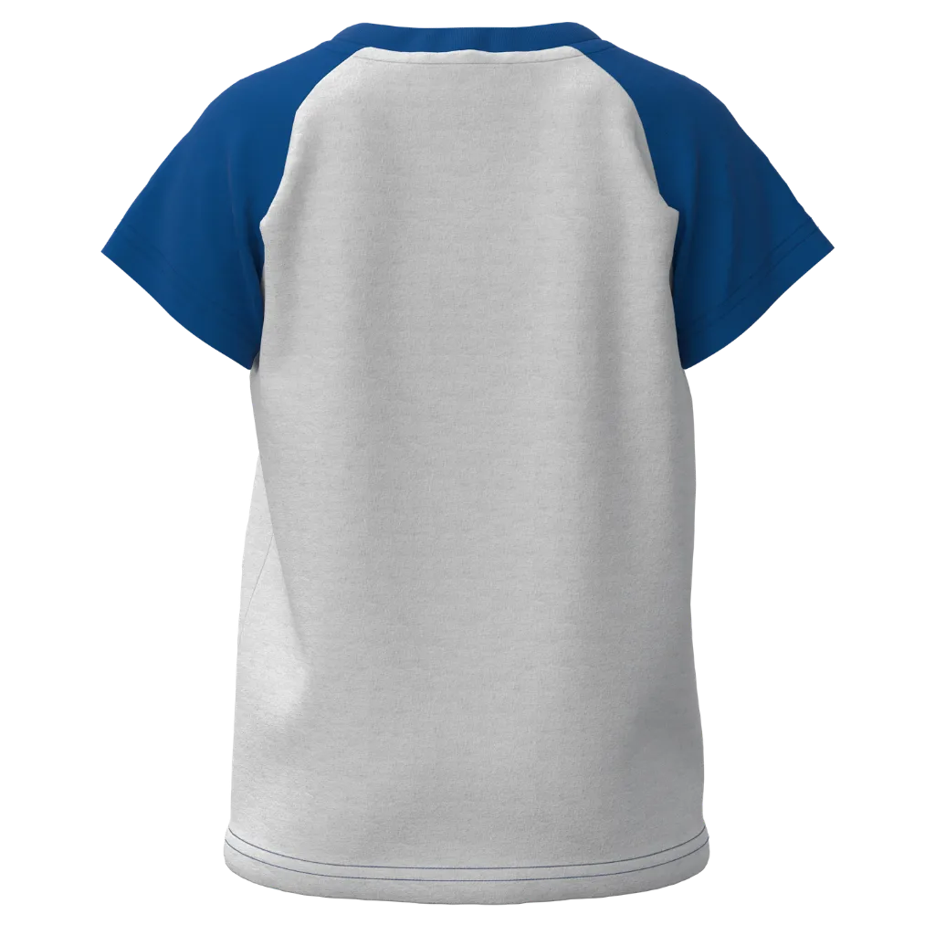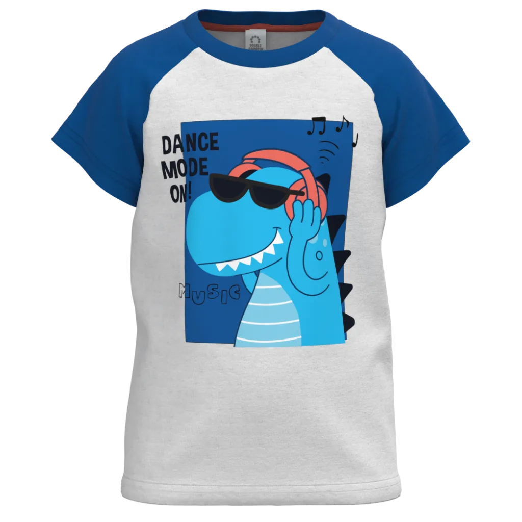 Blue & Grey Cotton Raglan T-Shirt for Boys | Dinosaur Dance Graphic Casual Tee | 1134