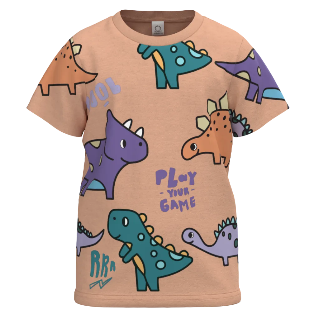 Peach Cotton Short Sleeve T-Shirt for Boys | All-Over Dinosaur Print Casual Tee | 1139