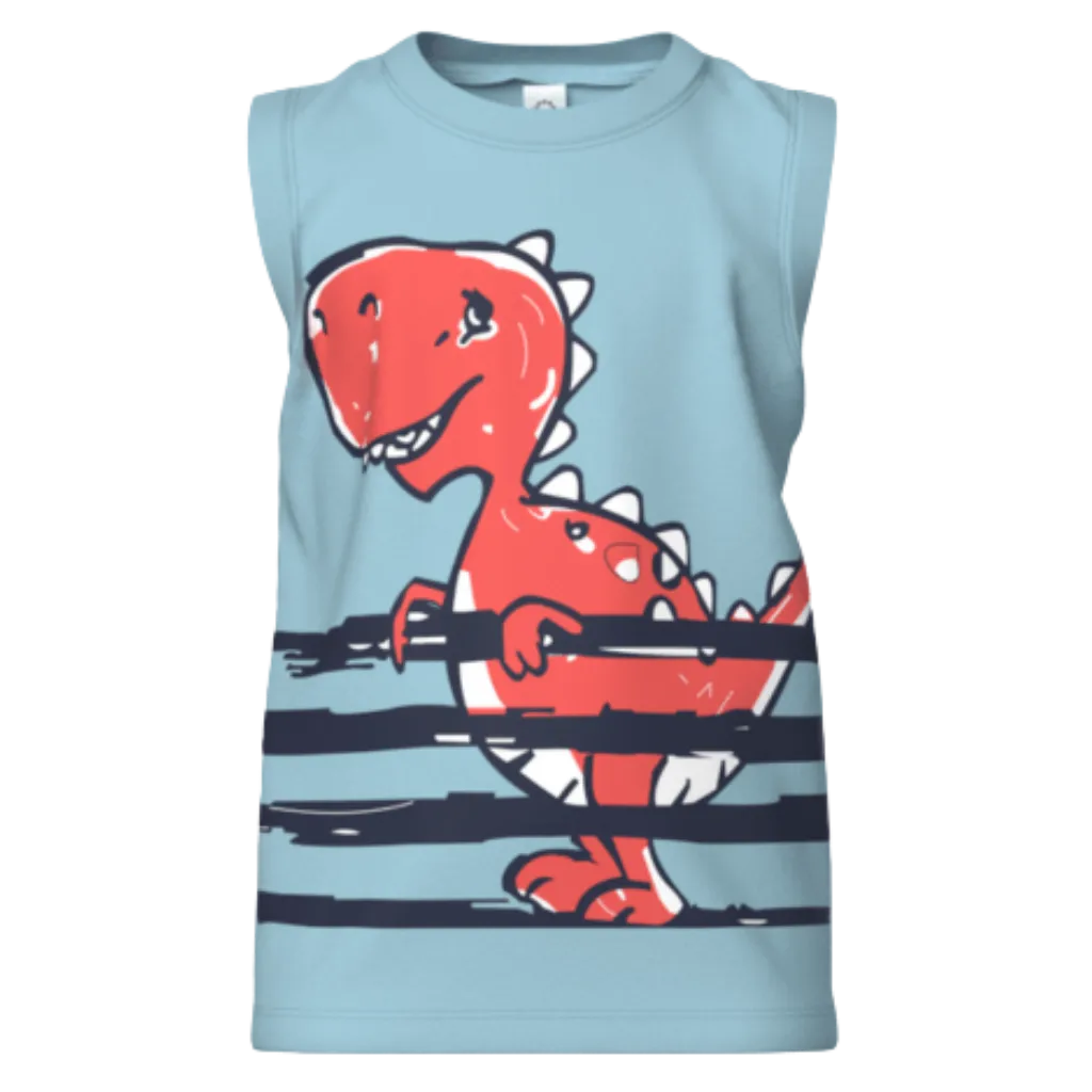 Playful Dinosaur Sleeveless T-Shirt for Active Boys.