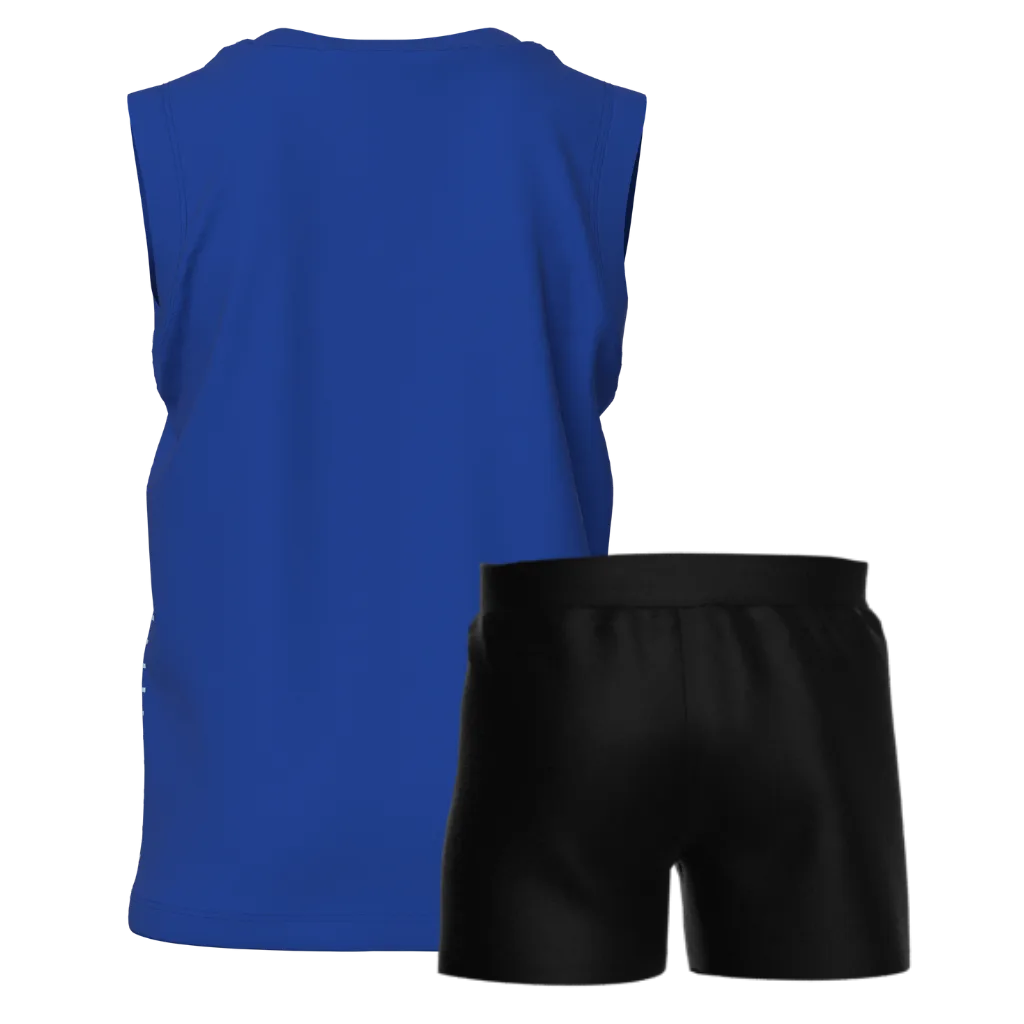Bright Blue Sleeveless T-Shirt & Black Shorts Set for Boys.