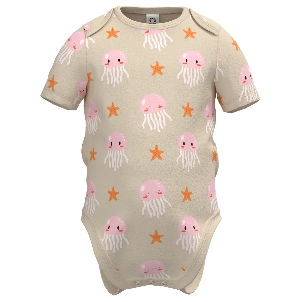 Silver Grey Jellyfish Print Romper for Girls | Baby Cotton Romper | Cute Ocean Theme Baby Bodysuit | 2026