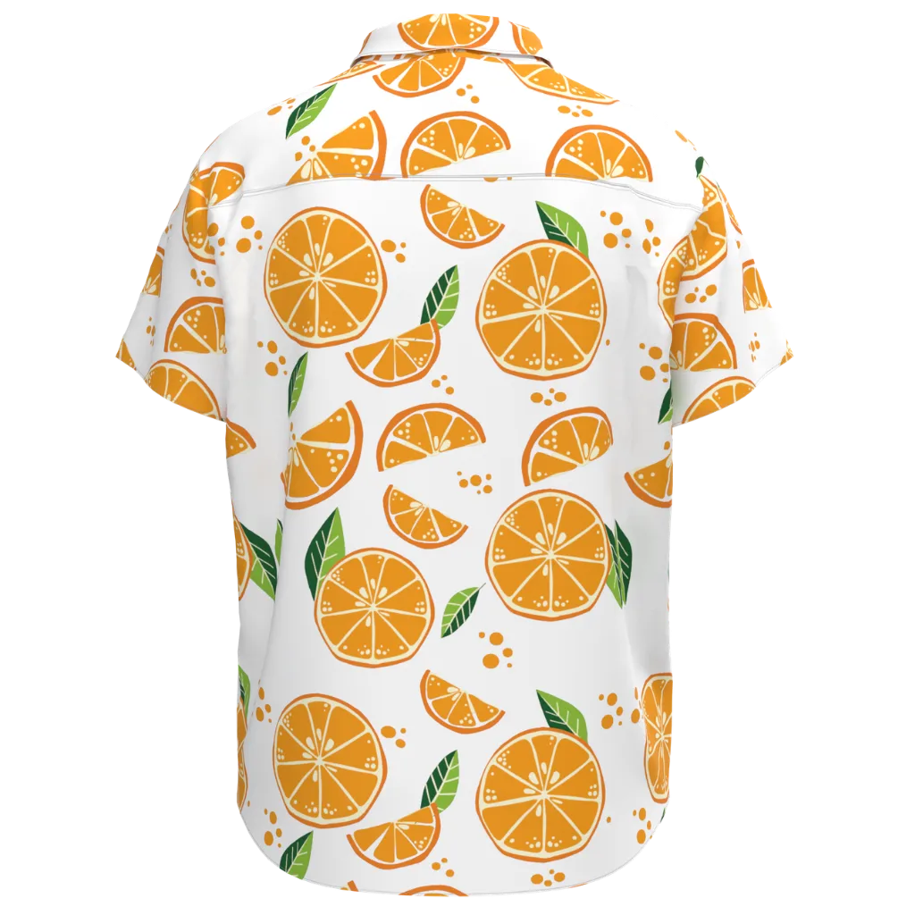 White Orange Print Short Sleeve Shirt for Boys | Kids Citrus Print Button-Up Shirt | Fun Summer Casual Shirt | 2130