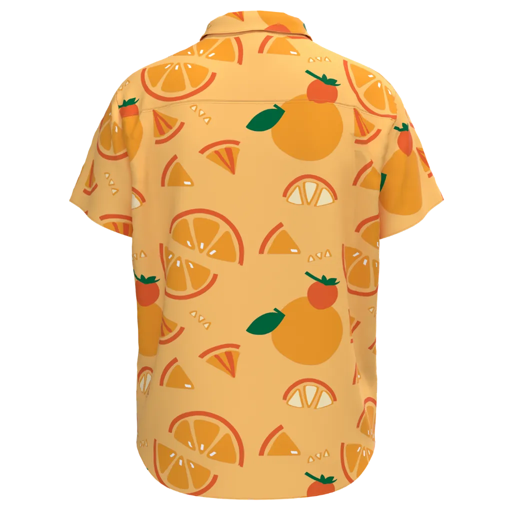 Cream Orange Print Short Sleeve Shirt for Boys | Kids Fruit Print Button-Up Shirt | Fun Summer Casual Shirt | 2131